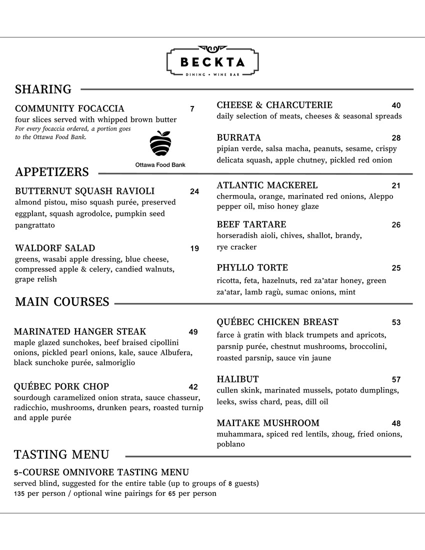 Dinner Menu